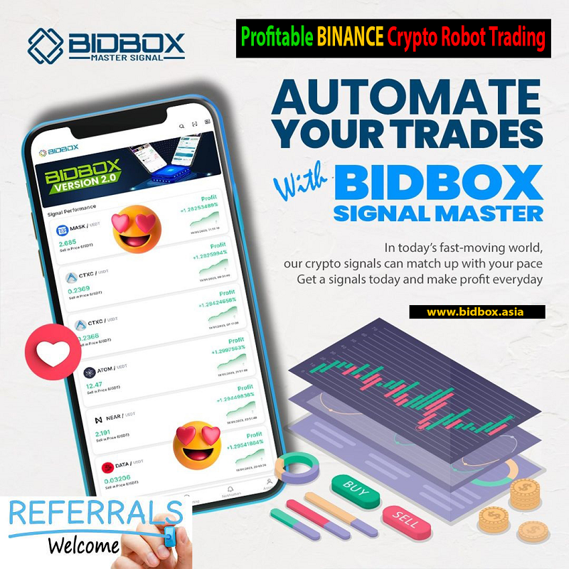 BidBox adalah aplikasi robot trading berteknologi tinggi yang memiliki kecepatan yang mampu melakukan perdagangan cryptocurrency di market terbesar dunia (Binance). BidBox Bot Trading dapat membantu para trader crypto 24 jam full otomatis yang dapat menghasilkan profit trading secara maksimal